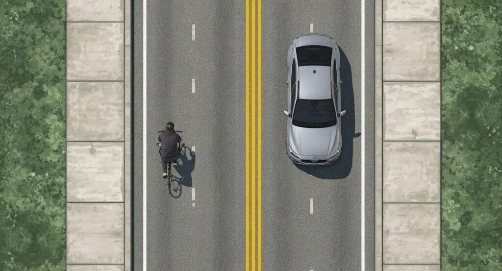 車道の左側を自転車で走る